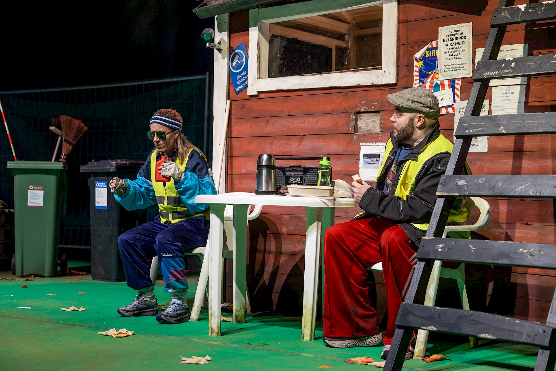 Päivät kuluvat, odotus venyy ja mielikuvitus lähtee laukkaamaan. Antero ja Esa sanailevat, ystävystyvät ja haaveilevat – kaksikon mielikuvitusleikki vie meidät Kalifornian aurinkoon, nostattamaan vallankumousta, ja pitämään ansaittua lounastaukoa kaiken tyhjänpäiväisyyden keskellä.